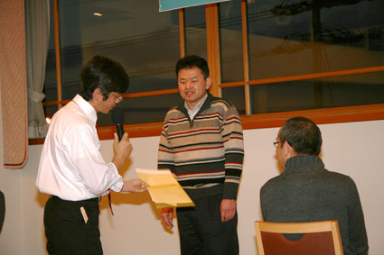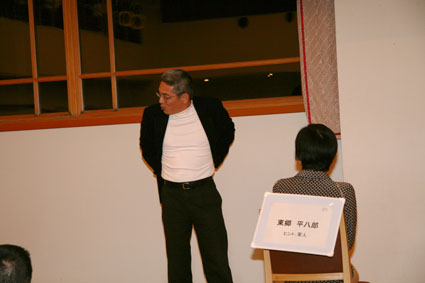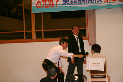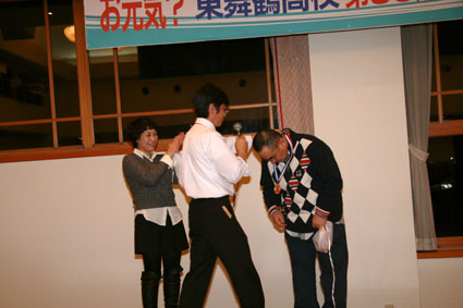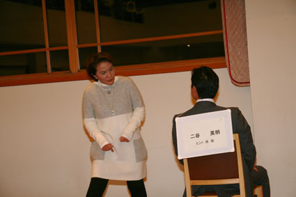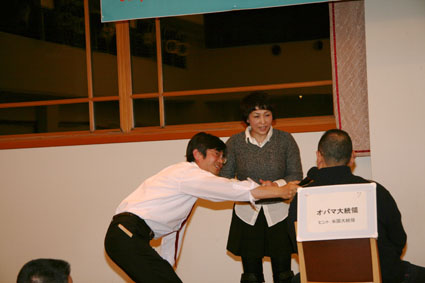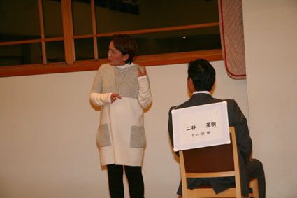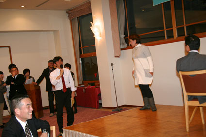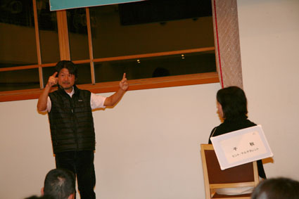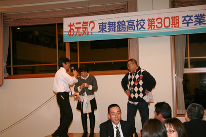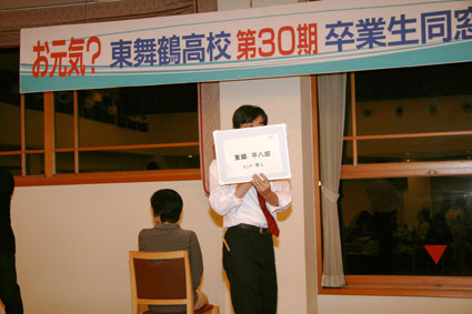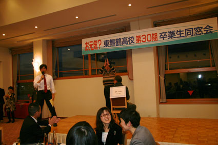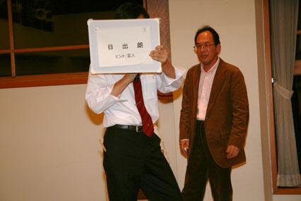 続きまして丸振りされた糸井君のゲーム まず幹事にルール理解させるのが大変 とりあえず見切り発車のジェスチャーゲーム おいおい答えみたらあかんやろ 「大丈夫かなぁ」「知らん」 とりあえず一生懸命! わかるようなわからんような・・・とりあえず中井は女子の横に座りたがる(これ、家族も見るんかな(^_^;?) 答えは全て、舞鶴ゆかりの人名って言うたっけ? ほら、座った! お次の方ど〜〜ぞ こりゃむずかしいわ。 誰か「二谷英明」のジェスチャー、やってみい! でも健気にやる友次、えらい。 こちらは元テニス部のエース。人生ってわからんもんやな。。。 答えは「ギャル曽根」! これ選んだえっちゃん偉い! ・・・・・ さてここから 超難問(っていうかジェスチャーの世界から離れていく) 日ハム糸井って、野球好きでもむずいわ! 続いて「千秋」!ち・千秋(^_^;? 今思うと、どんなジェスチャーやったかちゃんと見ておくんやった(^o^) 尚幸、ご苦労様。 オバマ大統領・・・もう舞鶴からも離れてる・・・ これ、幹事の責任にならへん? かまへんかまへん、いざとなったら糸井に全部おっかぶせ! 極めつけは「ひ・ひでろう」←ATOKの漢字変換も出てこうへんわ! これ、答え出たんかな。なぁ、ニク(^_^; 東郷平八郎・・・みなさんもお考えください。 考えろいうても、なぁ。。。 東のぉ、5のぉ・・・ってか? 終わったし余裕やんなぁ 納得できへんわぁ・・・ 罰ゲーム(^o^) でも、なんか、息ピッタリ\(^o^)/ ま、楽しかったらええか。 なんかくれるんなら我慢しよか 糸井、ありがとう!最高に楽しかった!・・・ってフォローになってへん(^_^;? |