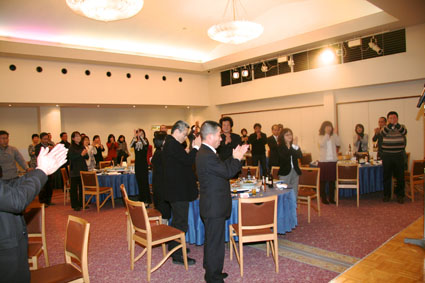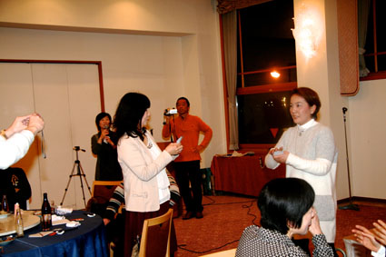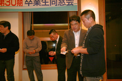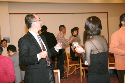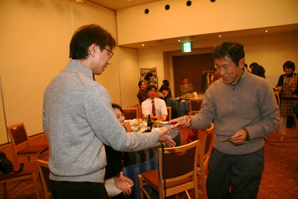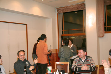 ほんとうに楽しかった 時間もほのほのと過ぎて 恒例のスクラッチじゃんけん! 考えたら生臭い(^_^; オレが当たったら全額「次回の同窓会資金に」って いや、このHPもつくって頑張ってくれた岡本君に って、寄付するなぁ 誰が当たったん?結局 この中に犯人が(もう、犯人扱い(^_^;) 最後の容疑者はこのふたり 決定的瞬間!!! 普通、幹事は当たらんぞ(ぶ〜ぶ〜ぶ〜いんぐ) ただ今の取り組みにつきまして、物言い。 うん、たしかに怪しい。。。 まぁみなさん、彼女を疑うのはやめましょう(なんか、ストーリーおかしくなってる?) お開きの1本締めっす いや〜ほんとに 楽しかった ぱん! ごくろうさまでした〜 幹事さんも、ほっとしました。 二時会もありますよ〜 いかいでか! カラオケ?ちょ〜ひさしぶり! |